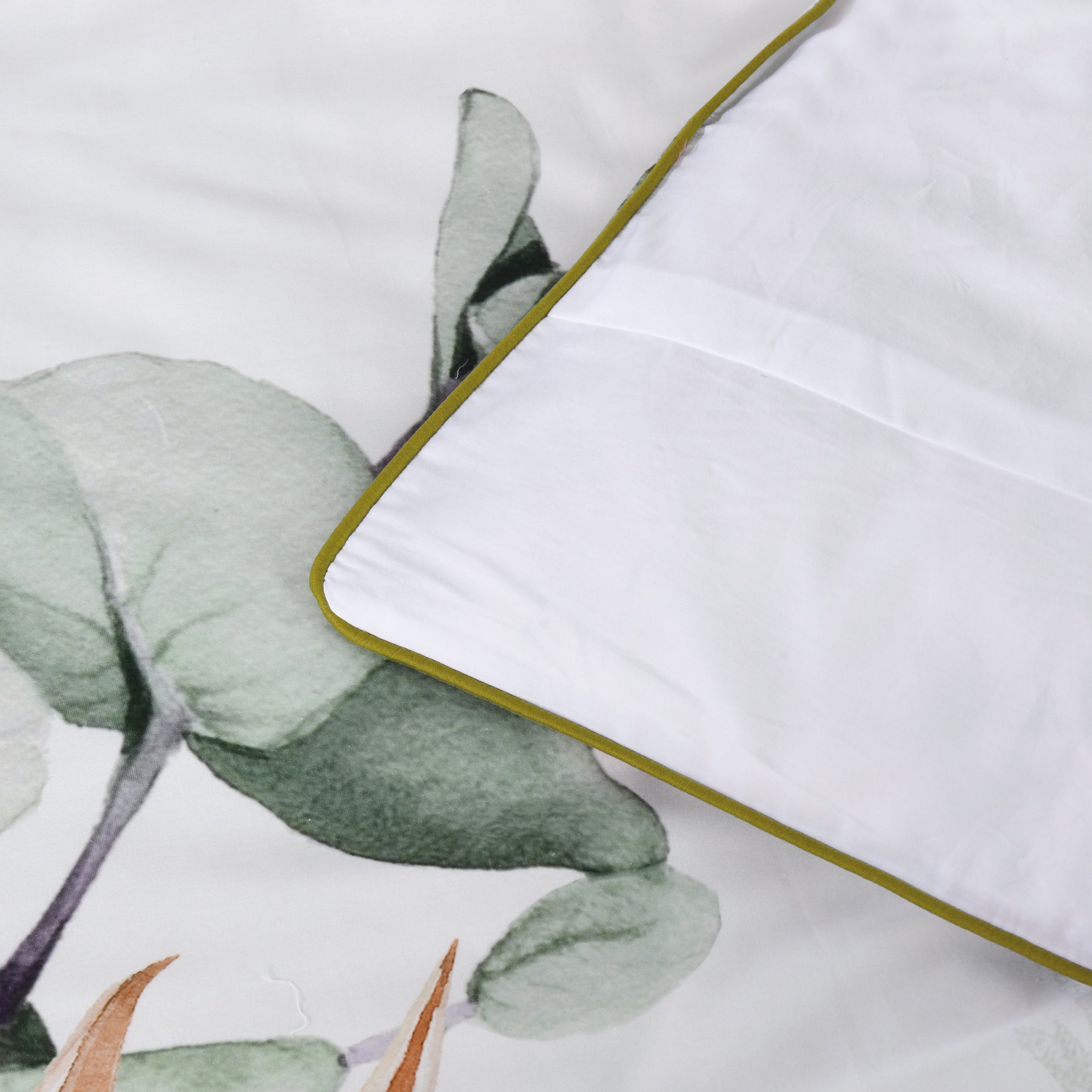 Breathe fresh style into your summer bedroom with this on-trend quilt cover. Featuring a beautiful floral design and printed on smooth cotton sateen fabric. Finished with a chic green piped edge, it’s where comfort meets seasonal flair.